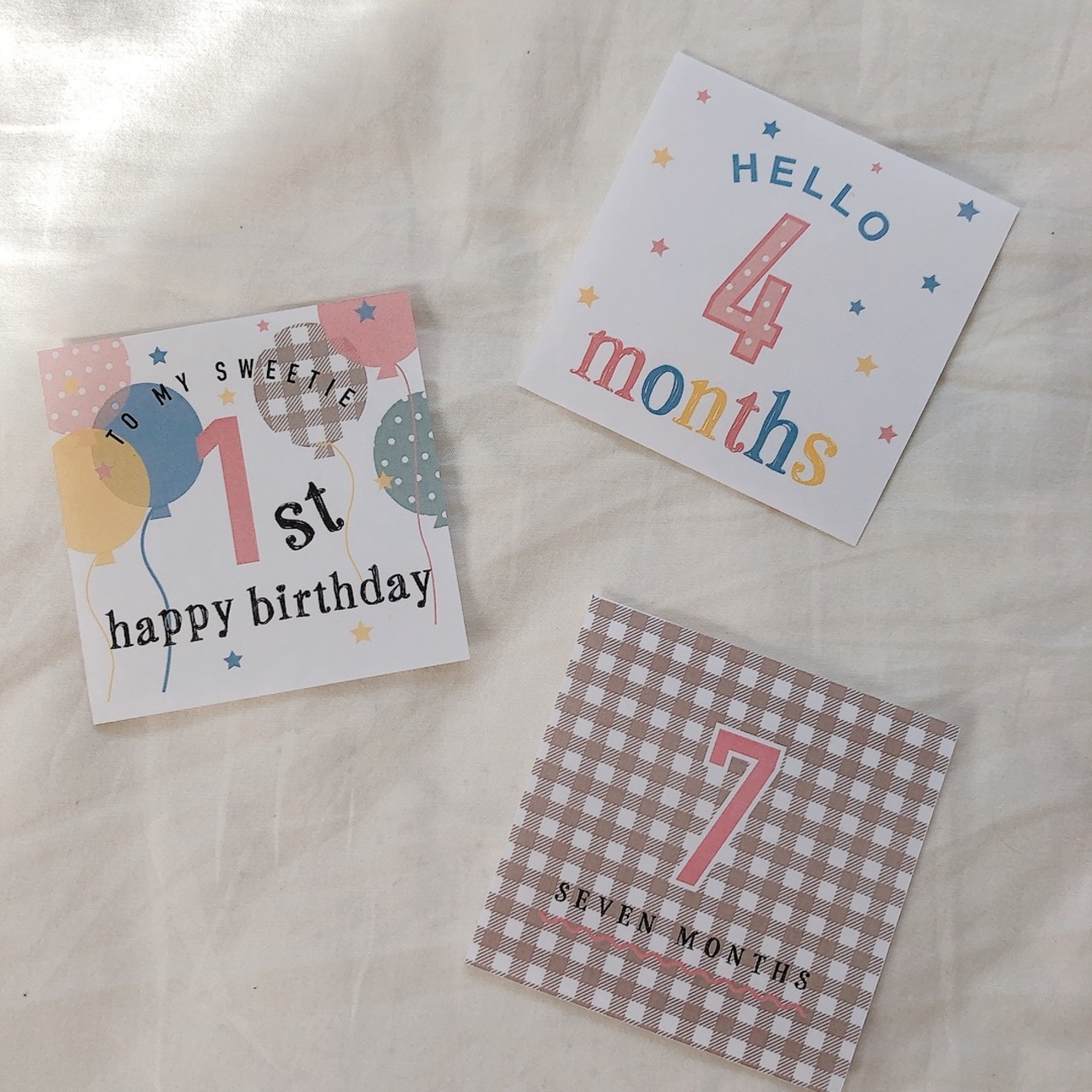 赤ちゃんが生まれたらすぐに忙しい毎日が始まります。うっかり写真を撮り忘れた!と言うことの無いように、赤ちゃんが生まれる前までにはマンスリーカードを用意してくださいね♫